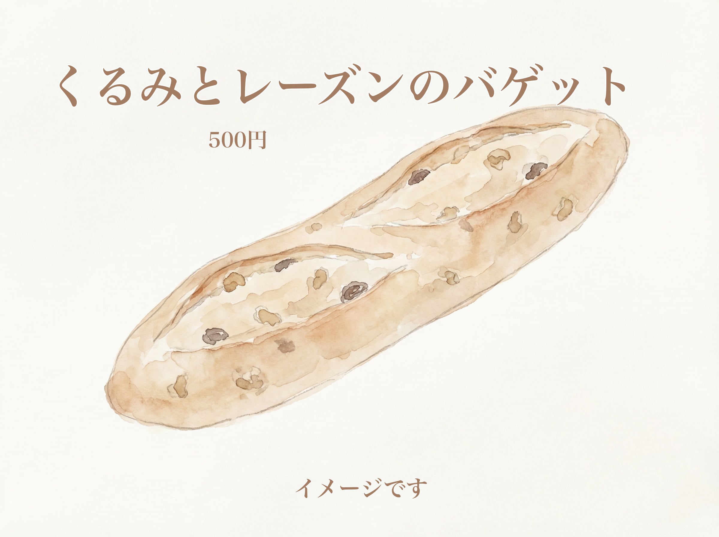 風味豊なくるみと甘酸っぱいレーズンが詰まった、くるみレーズンバゲットです。外はパリッと、中はふんわりとした食感が特徴。